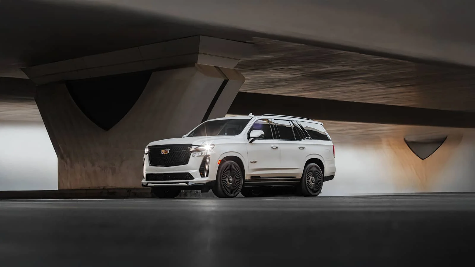 Book your Cadillac Escalade V White rental in Abu Dhabi today!