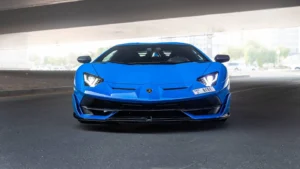 Book your Lamborghini Aventador SVJ Blue Rental in Abu Dhabi today!