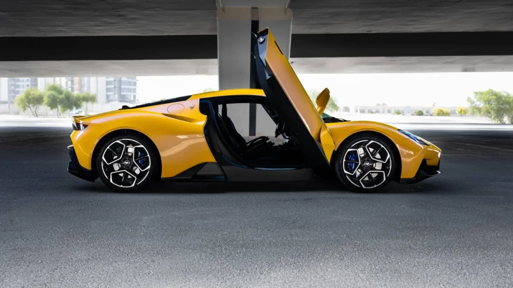 Book your Maserati MC20 Yellow rental in Abu Dhabi today!